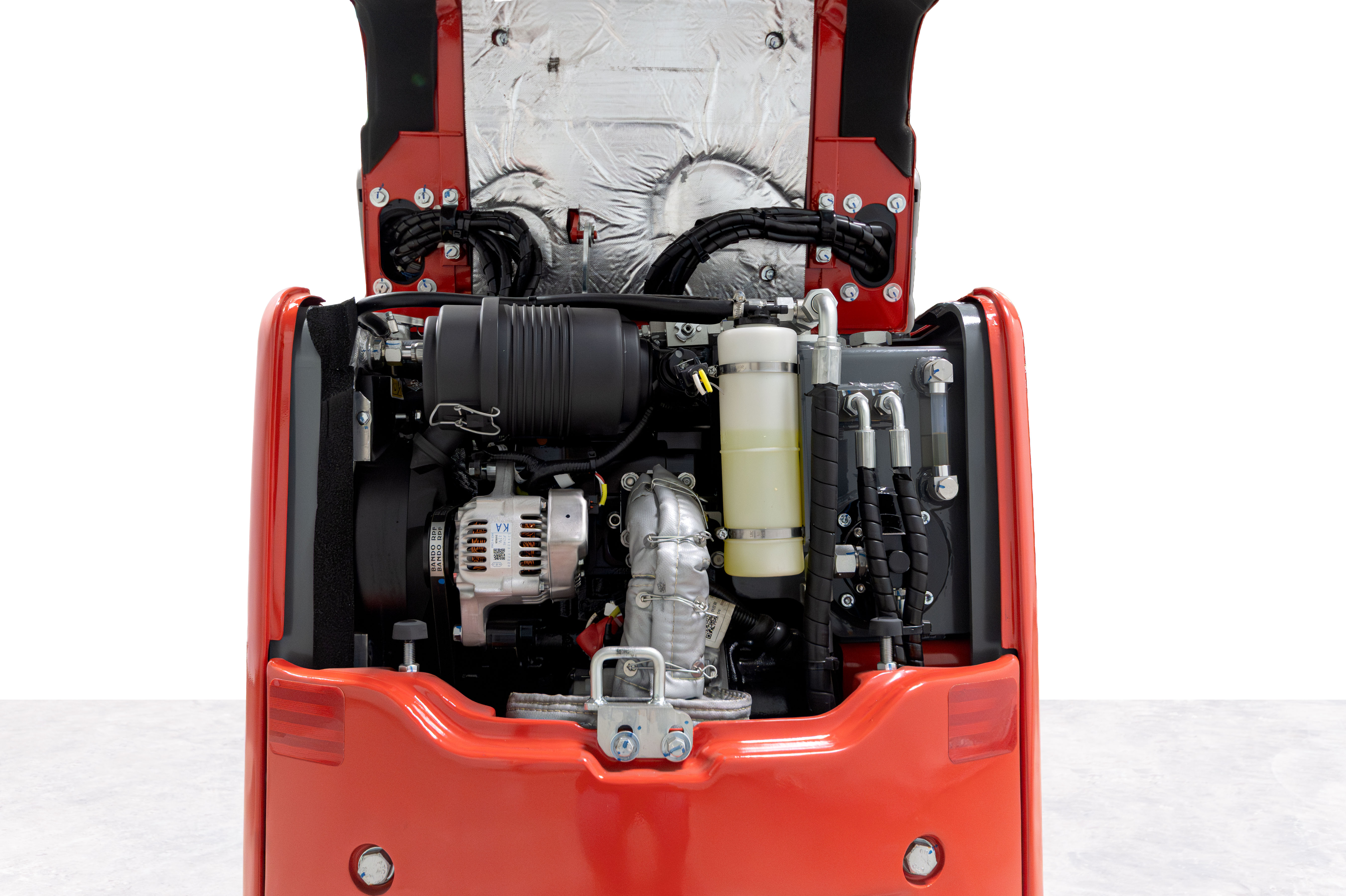 Die klappbare Motorhaube gibt den größten Teil des Motors frei, Wartungen gehen schnell von der Hand.